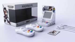 Расцветок тоже три — белая, синяя и красная, причём каждая символизирует одного из бойцов Samurai Shodown. Белая — Хаомару, синяя — Укио Тачибану, а красная — Накоруру. Соответствующие коллекционные карты и наклейки (в том числе и для панели управления) прилагаются. В остальном всё более-менее традиционно — два геймпада, кабели HDMI и USB-C, а также 40 встроенных игр. Стоимость — от $ 167 до $ 177 долларов.
