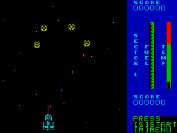 Коллеги с сайта Planeta Sinclair навели нас на отличную космическую стрелялку для ZX Spectrum под названием Astro Blaster. Она является прямым портом одноимённого аркадного хита родом из начала 80-х (точной датой релиза считается 31 декабря 1981-го), причём на две головы превосходит предыдущую попытку перенести эту игру на «Спектрум» — детище Джона Эдвардса 1983 года, изданное небезызвестной компанией Quicksilva.