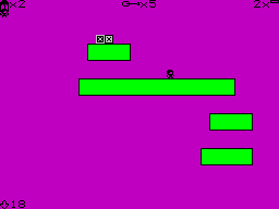 Вы управляете парашютистом, который должен спуститься на землю с каких-то непонятных верхотур. Путь преграждают бесконечные платформы, после приземления на которые приходится выбрасывать по одному парашюту (а их количество строго ограничено), плюс можно вообще промахнуться мимо «посадочной площадки». По счастью, приземлившись на ящик, можно пополнить запас парашютов, а при себе у нашего героя имеется несколько лопат для прокапывания себе пути вниз и несколько досок для строительства лестниц вбок. В общем, несмотря на дёрганное обновление экрана, игра достаточно интересная — её бы скомпилировать, и получится вообще хорошо.