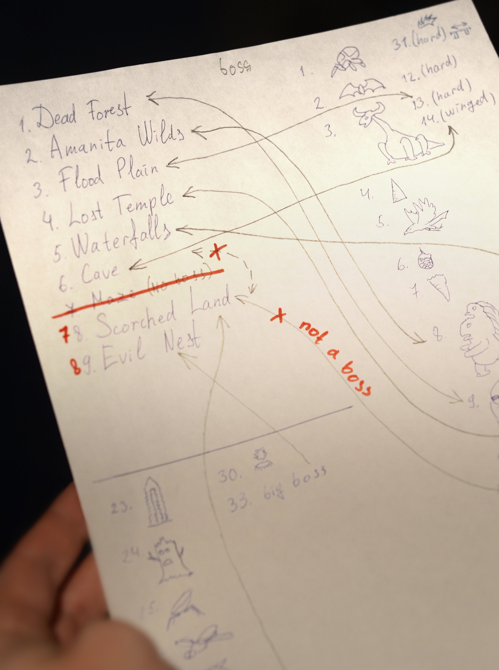 Почти так и планировалось. Должен был быть ещё один уровень под названием «лабиринт», весьма отличающийся от остальных и менее динамичный, но по ходу работы стало ясно, что в этой игре он буден не совсем уместен, от него отказались ещё до того, как память стала заканчиваться. На удивление, все уровни и более 30 врагов уместились в памяти, хотя изначально держали в уме возможность подзагрузок.