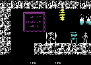 Как правило, это скролл-шутеры и всевозможные клоны Commando, но Элеонор Бёрнс умудрилась сделать аж целый платформер с элементами квеста. Игра называется Synthia in the Cyber Crypt и повествует о роботессе HEC-80 (она же, видимо, Синтия), которая должна спасти человечество от взбесившегося искусственного интеллекта (очевидно, более совершенного, чем она сама).