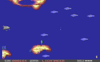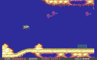 Студия Abyss Connection выпустила на Commodore 64 стильный скролл-шутер Into Hinterland World — с плавным скроллингом, отличной музыкой, неплохим геймплеем и даже каким-никаким сюжетом, который забрасывает главного героя в разные временные периоды, где тому приходится сражаться с довольно необычными врагами.