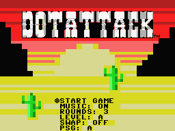 Игра использует третий графический режим MSX, в котором разрешение экрана составляет всего 64×48 здоровенных пикселей, зато каждый можно окрасить одним из 16 цветов (в других режимах цветов столько же, но ограничения по горизонтали чуть строже). В итоге Dot Attack выглядит зернисто, но ярко, красочно и вообще стильно.