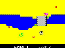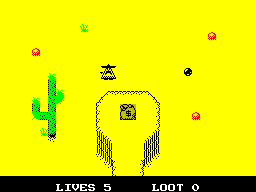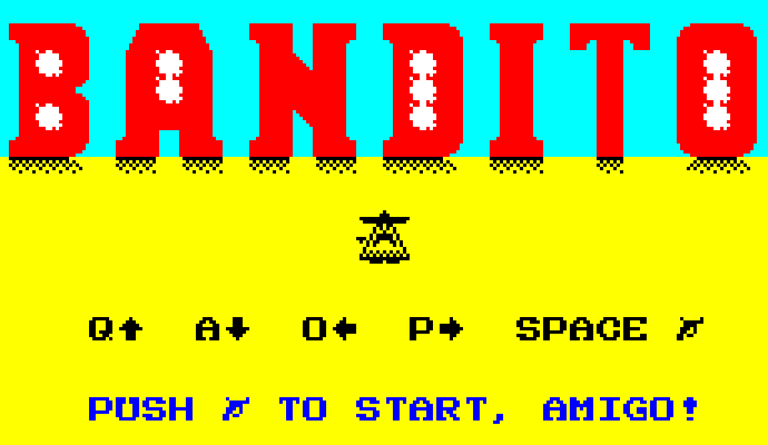 Сайт Planeta Sinclair навёл нас на аркаду Bandito, которую сделал некий Payndz. Действие игры происходит в 1848 году, а вы исполняете роль — сюрприз! — бандита, который бегает по Дикому Западу, постреливает по многочисленным врагам и собирает мешки с деньгами.