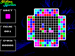 Отечественный программист Sanyok сделал для ZX Spectrum головоломку Sliding Blocks — аналог одноимённой игры для PC. Сделал на ассемблере, что похвально; а ведь мог ограничиться и скомпилированным Бейсиком, большой разницы бы не было.