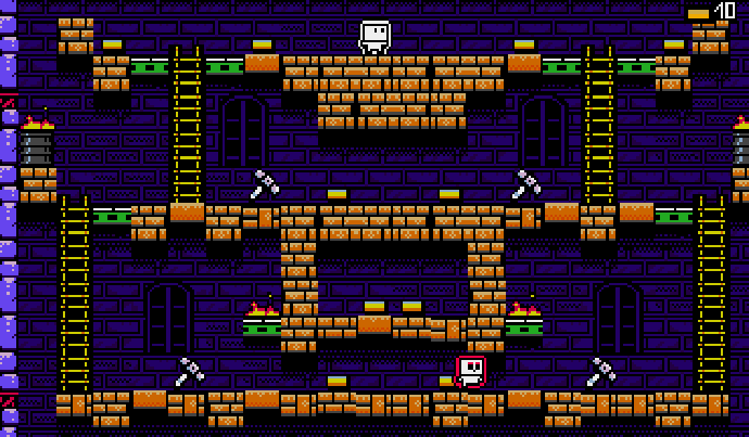 Напомним, что её геймлей порядком смахивает на Lode Runner, но со своими особенностями: здесь тоже нужно бегать по экрану, собирать золото и уворачиваться от врагов, но дырки в полу надо делать не для того, чтобы супостаты в них застряли, а чтобы провалиться туда самому (и цапнуть ещё один золотой слиток, например). Причём просто так сделать дырку не получится — сначала надо раздобыть кирку.