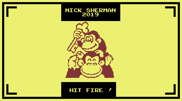 В конце прошлого года Ник Шерман выпустил несколько компьютерных версий известной электронной игры из серии Game & Watch — Donkey Kong Jr.. Её главный герой — сын Донки Конга — должен был пробраться на верх экрана, избегая крокодилов и птиц, схватить вкусный фрукт, а потом в нужный момент схватить ключ и отпереть им клетку, в которой сидел его более именитый папаша.