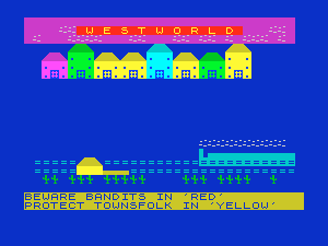 W E S T W O R L D (сайт) — не самая лучшая игра, но не отметить её было невозможно, поскольку это своего рода адаптация известного сериала «Мир Дикого Запада». Выглядит как минимум забавно, а игровой процесс состоит в том, что нужно ходить по экрану и защищать мирных жителей от бандитов (то есть жёлтых человечков — от красных).