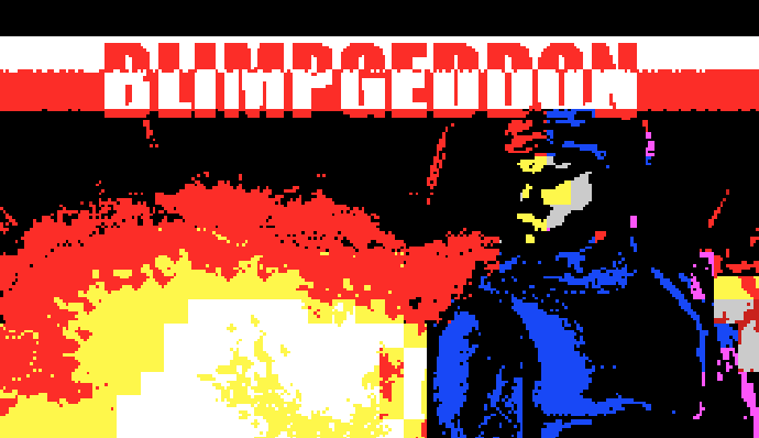 Blimpgeddon — ещё одна неплохая аркада на движке AGD, которая по понятным причинам мало чем отличается от своих сестёр по жанру. Кроме, пожалуй, странного решения автора под ником Narwhal вместо переопределения клавиш сделать две версии игры — с раскладками «QOPM» и «ESF0».