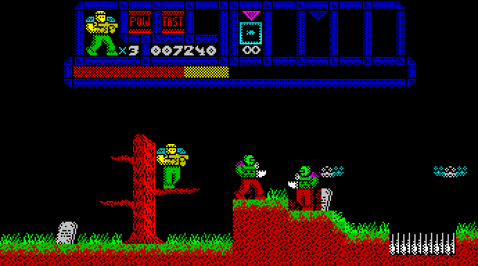 В результате этого «сочетания скуки и бессонницы из-за попыток разобраться в странной раскладке спектрумовского экрана» родилась отличная стрелялка Hell Yeah! в лучших традициях то ли испанских релизов от Dinamic Software (например, Astro Marine Corps), то ли шедевров Дэйва Перри и Ника Брути (Savage и не только). Проще говоря, игра может похвастаться красочной графикой, познакоместным скроллингом, минимальным клэшингом атрибутов и очень бодрым геймплеем.