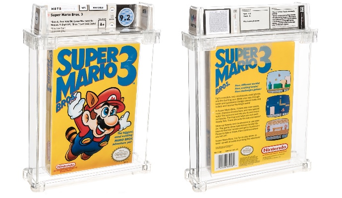 И вот очередная игра про Марио — Super Mario Bros. 3 — заставила какого-то толстосума раскошелиться на $ 156 000. Торг начался с уже немаленькой суммы $ 62 500, которая в итоге выросла в два с половиной раза. В качестве причины такого сумасшедшего спроса (в торгах участвовало 20 человек) называется не только отличное состояние коробки с игрой (A+ 9.2 по шкале Wata), сколько необычное расположение изображений на лицевой стороне — надпись BROS выровнена по левой стороне и залезает на белую перчатку Марио. Оказывается, коллекционеры с ног сбиваются, пытаясь найти такой варианты игры (это самая первая напечатанная партия), но их поиски, как правило, оканчиваются ничем.