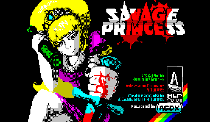 Свершилось! Товарищ Кев Макджи (Kev Mcg), автор In the Walls of Eryx и The Wicker Woman, назвавшись для солидности длинным титром Monster's Legs Productions, наконец-то доделал свой трёхлетний долгострой — экшн-платформер Savage Princess для ZX Spectrum на движке AGD. Кстати, мы два года назад написали об этой разработке небольшую заметку. И вот — свершилось!