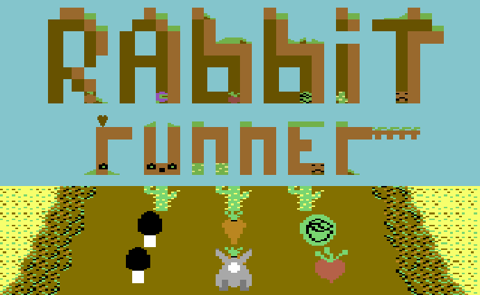 Как известно, кролики — это не только ценный мех, 3-4 килограмма диетического, легкоусвояемого мяса, но и отличные персонажи. Багз Банни не даст соврать. Видимо, разработчик под ником DoubleG считает так же, поэтому для своего дебюта на C64 он выбрал главным героем кролика. Игра называется Rabbit Runner и, как следует из названия, является бесконечным раннером.