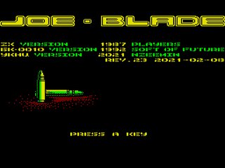Пользователь форума ZX-PK.ru по имени Никита Зимин с сентября 2019 года работает над портом экшена Joe Blade на советский компьютер УКНЦ («Электроника МС 0511»). Изначально игра вышла на ZX Spectrum, Commodore 64 и Amstrad CPC, но за основу Никита взял неофициальную версию для БК-0010. Правда, уже успел об этом пожалеть — оказалось, что в этом порте не хватает многих комнат, а главный герой не умеет прыгать. С адаптацией графики тоже пришлось повозиться, но результат получился более чем приличным.