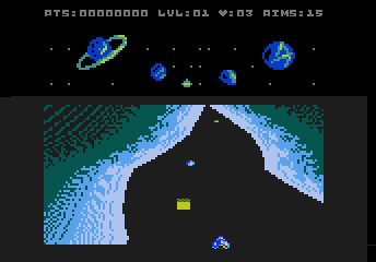 A nimble but very complex clone of the famous horizontal scrolling shooter Uridium, in which the ship can fly not only forward but also backward.