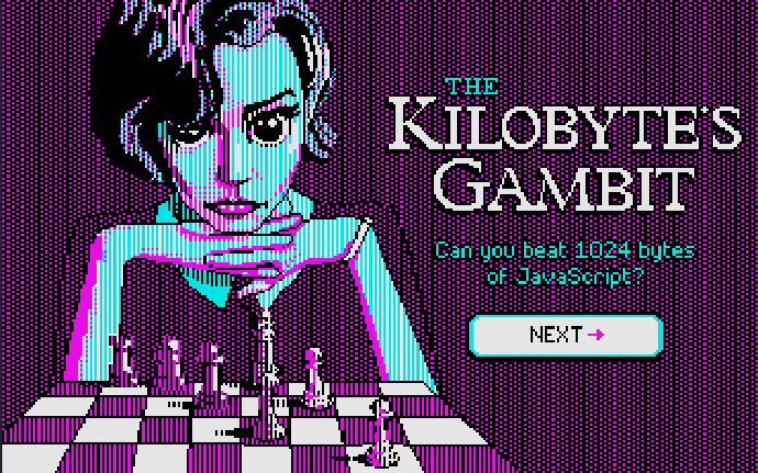 В марте сего года товарищ Мэтт Раунд, автор весьма странного сайта VOLEwtf про всякое-разное (неординарное), выпустил необычную браузерную художественную адаптацию шахматной программы Toledo Atomchess от Оскара Толедо, отличительной особенностью которой является её крайняя миниатюрность — вся игра занимает меньше одного килобайта кода. И это не предел — версия для MS-DOS занимает всего 392 байта!