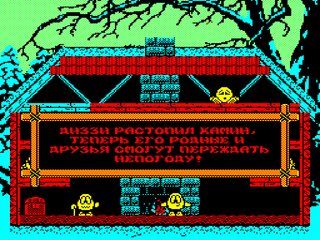 Игра, к сожалению, не сильно большая — уже известный вам по порту «Сокобана» Сергей из города Электроугли перенёс на БК фанатский мини-квест Log Cabin Dizzy, изначально появившееся на PC, а затем портированный и на ZX Spectrum. В своей очередной инкарнации игра получила название «Диззи: Зимнее приключение» и, как несложно догадаться, полностью переведена на русский.