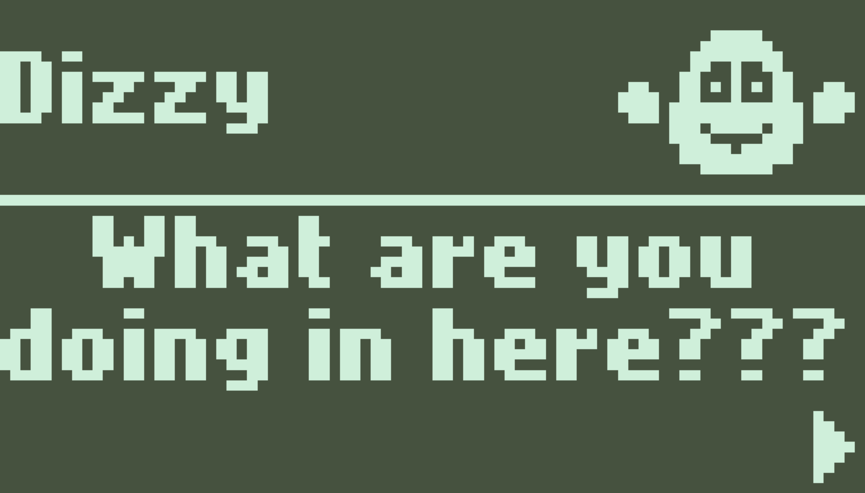 Скачать Dizzy and the Mushroom Pie для первой карманной консоли Nintendo можно с «Идеального пикселя» или с GitHub, а поиграть онлайн — на Itch.io. От обеих предыдущих версий она, разумеется, порядком отличается — и разрешением, и отсутствием цвета, и расположением предметов, и другими мелочами.