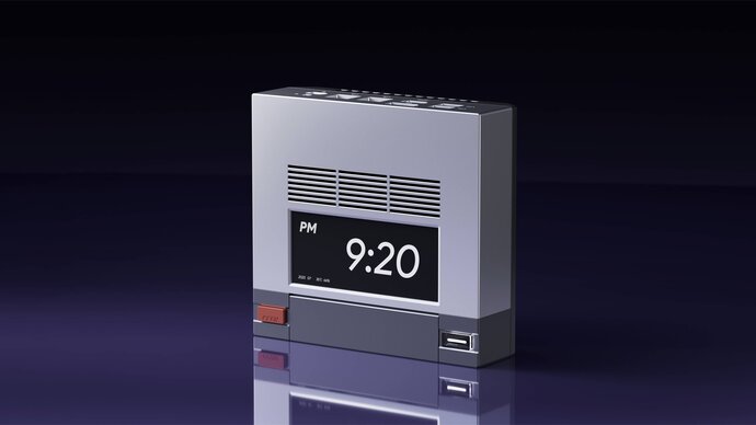 Ещё один мини-компьютер, но на этот раз в дизайне, отдалённо напоминающем то ли приставку NES, то ли радиоприёмник, то ли вообще тостер. Из забавных фишек — якобы слот для аудиокассеты, вместо которого прячутся USB-порты и 3,5-миллиметровый разъём для наушников.