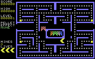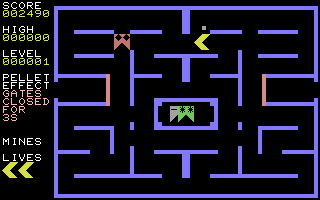Как видите, далеко не все эффекты положительные, но с этим придётся мириться, ведь для прохождения уровня здесь, как и в Pac-Man, нужно слопать все таблетки, включая энерджайзеры. Ах, да, ещё у игры есть несколько уровней сложности, включая ваш любимый Nightmare, а приведений на уровне может быть от 4 до 6.