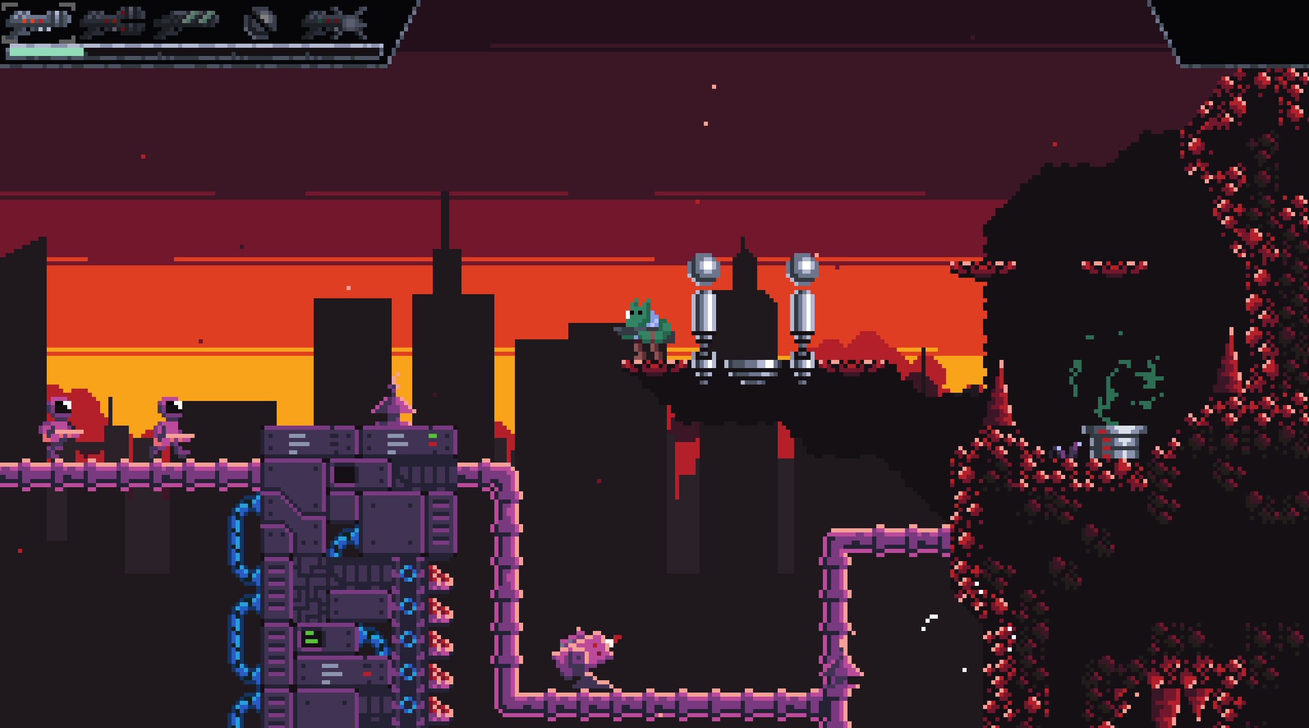Автор новинки под ником Securas сделал игру для конкурса Devtober Game Jam и с названием долго не мучился — просто не стал его менять. Rex значит Rex. А вот визуальный облик игры сильно поменялся — игра стала более красочной и анимированной, но на удивление как будто ещё более пикселизованной. Проблема нового «Рекса» в том, что иногда спецэффектов так много, и из них так отчаянно лезут пиксели, что становится сложно разобрать, что вообще происходит на экране. Вот этот враг, в которого я пальнул уже несколько раз — он ещё живой или всё-таки помер? За бесконечными взрывами не разглядеть.