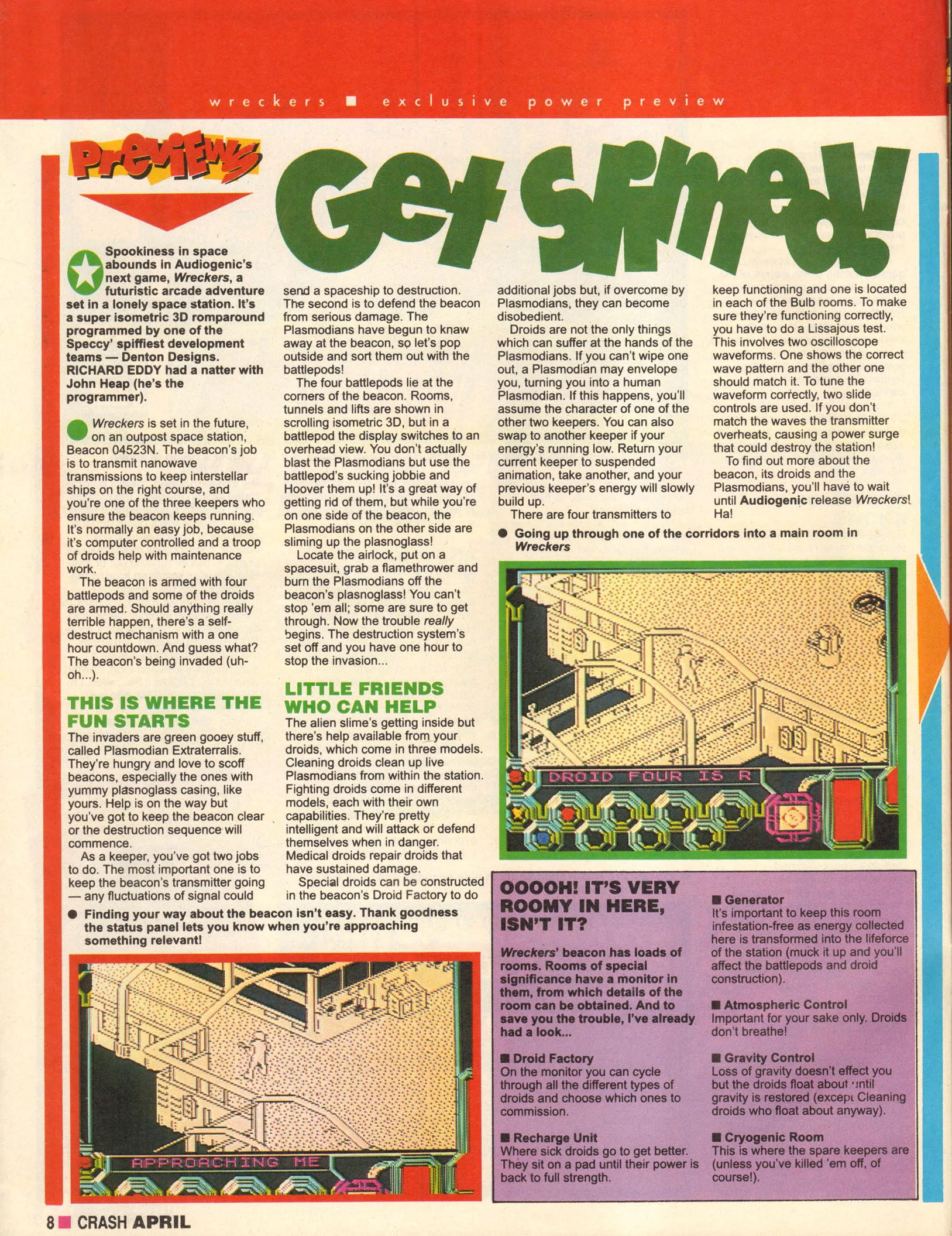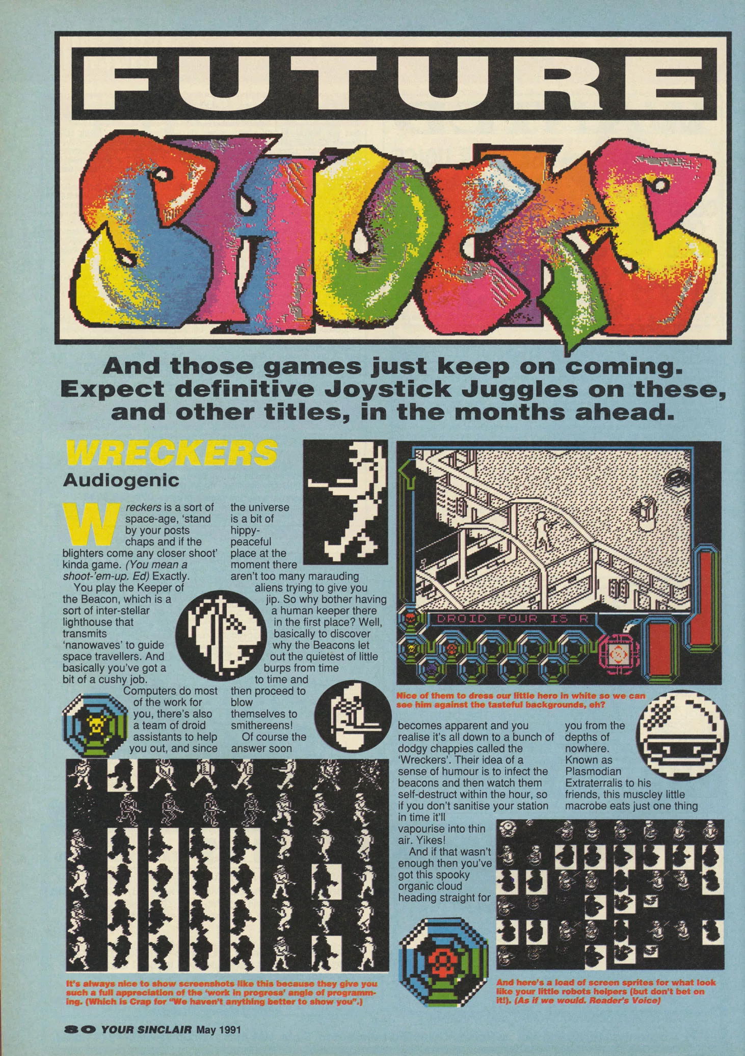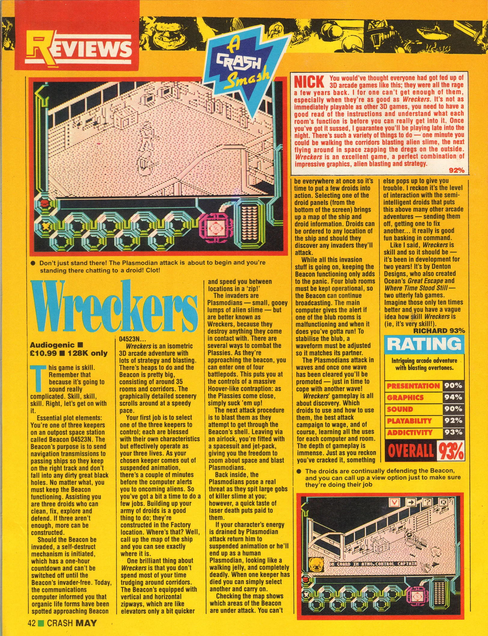 А вот с версией для ZX Spectrum всё куда запутаннее и печальнее. Дело в том, что её полностью отрецензировали в журнале Crash за май 1991 года, а это почти наверняка означает, что журналистам был выдан как минимум очень близкий к финалу билд. Более того, рецензия вышла вполне себе восторженная — Wreckers получила рейтинг 93% и почётную награду A Crash Smash. Казалось бы — дело за малым, осталось выкинуть игру на прилавки и собирать сливки... Ан нет.