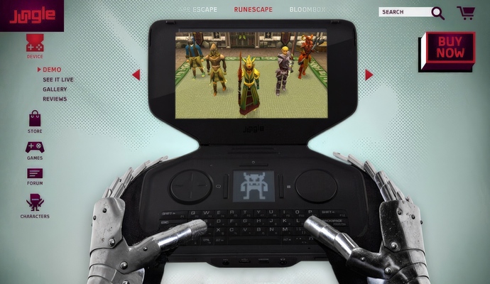 Panasonic Jungle — малоизвестный проект, анонсированный в далеком 2010 году. Устройство представляет собой портативную систему в форм-факторе раскладушки, напоминающую миниатюрный ноутбук. Однако, в отличие от привычных лэптопов, Jungle создавалась специально для любителей MMO. На момент анонса были подтверждены такие игры, как Battlestar Galactica Online, Stellar Dawn и RuneScape.