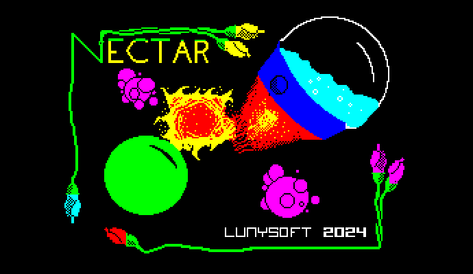 Разработчик с ником Luny выпустил свой второй релиз для ZX Spectrum — аркаду Nectar, явно вдохновлённую работами Ultimate Play The Game, а именно классикой типа Pssst и Cookie.