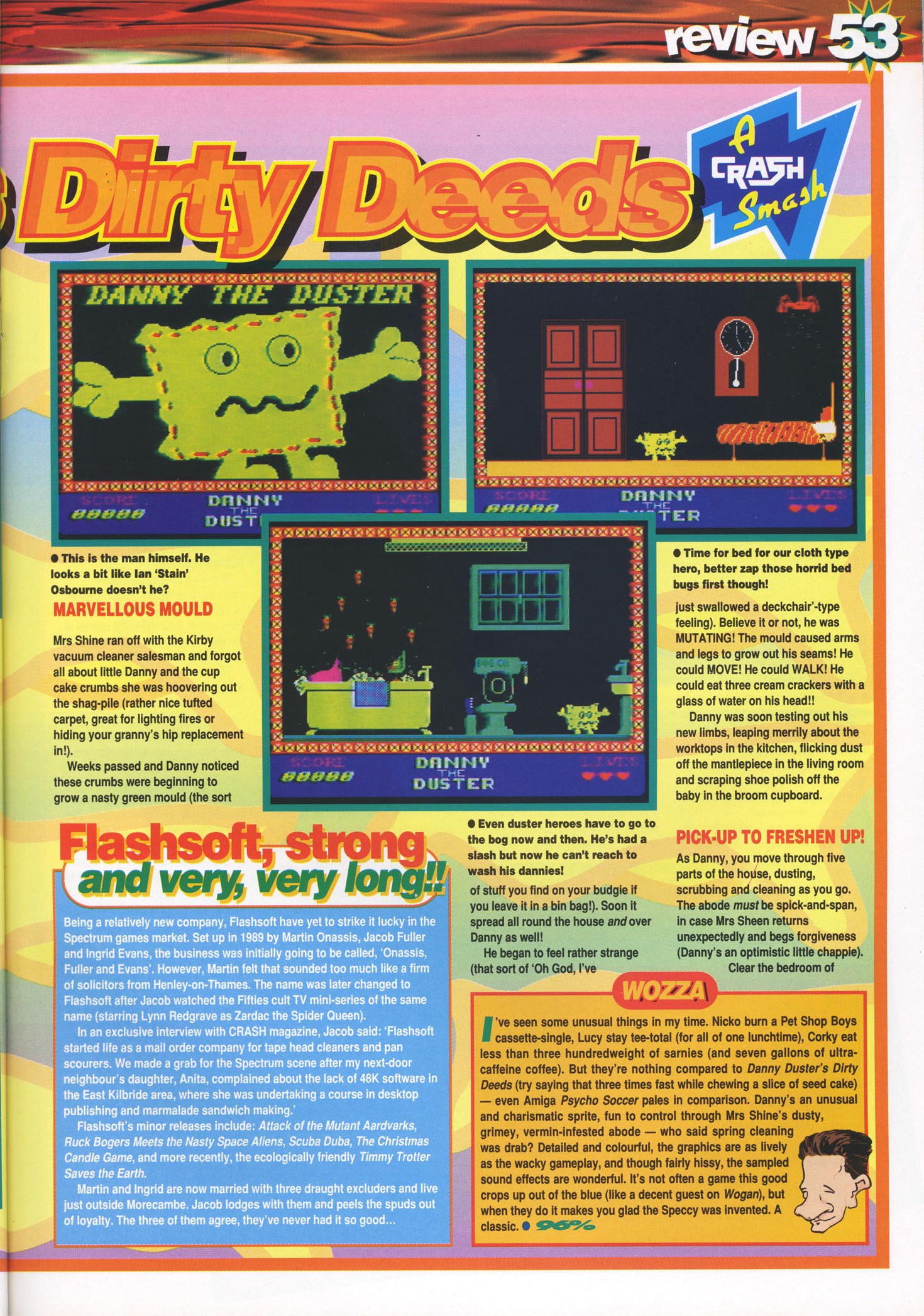 В апреле 1992 года легендарный журнал Crash решил подшутить над своими читателями, опубликовав в 98-м номере рецензию на несуществующую игру под названием Danny Duster's Dirty Deeds («Грязные делишки Дэнни Дастера»). Трёхстраничный материал, снабжённый относительно правдоподобными скриншотами, рассказывал про некий аркадный квест в стиле серий Dizzy и Wally Week.