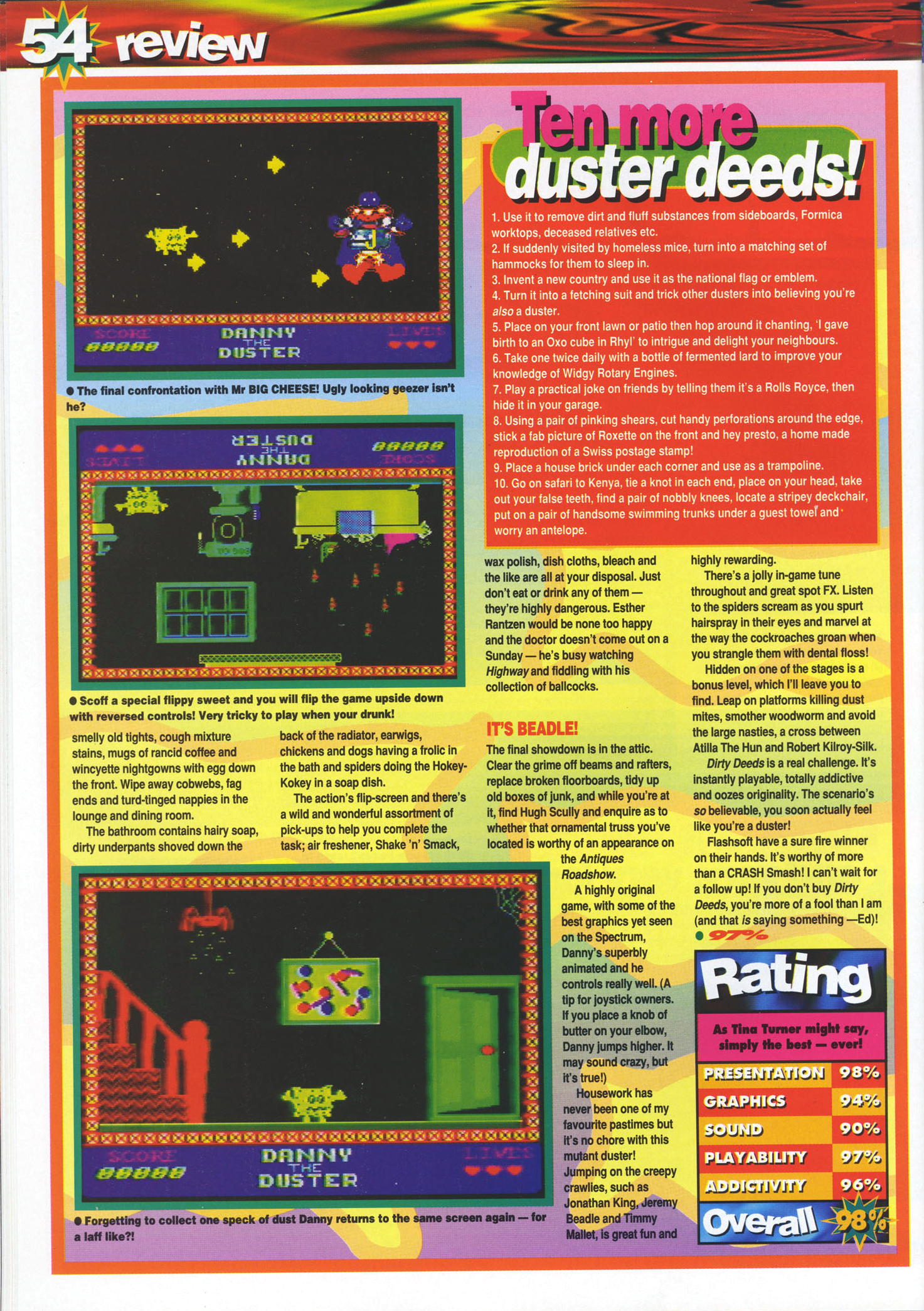 Таким образом, Danny Duster's Dirty Deeds — игра, которая не просто не вышла, а никогда и не существовала. Жаль, конечно, что не сохранились оригинальные скриншоты — остаётся довольствоваться сканами из журнала.
