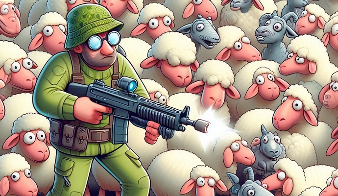Это всё ещё своего рода клон Robotron, в котором вам надо носиться по экрану, стреляя во всё подряд и уворачиваясь от врагов. Но, как и в Mutant Mushrooms, враги здесь неуязвимы, а расстреливать следует не пойми чем провинившихся овечек. Иногда, правда, появляются экраны с другой целью — например, надо собрать 10 страниц какой-то рукописи.