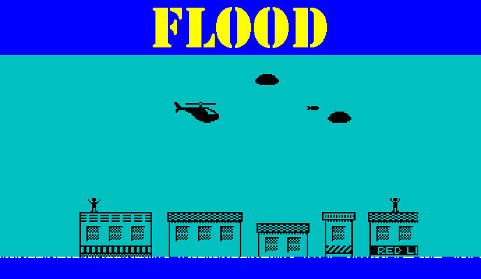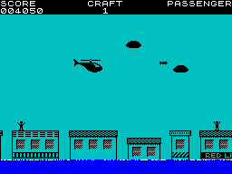 Во-вторых, игра почти полностью монохромная — всё чёрно-голубое, немного выделяется лишь бело-синяя вода. При такой-то простенькой графике можно было без проблем сделать цветными хоть наш вертолёт, хоть инопланетян, хоть дома.