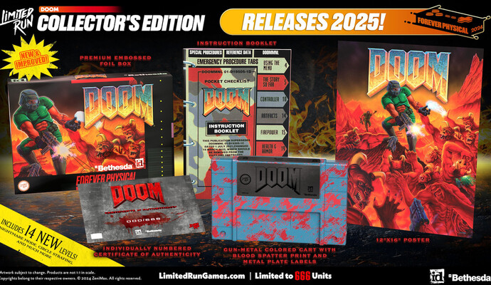 Предзаказы на обновлённую и улучшенную версию Doom для SNES пока не открыты, остаётся ждать новостей. Но уже известно, что в продаже появятся две версии — стандартная и коллекционная. Картридж, инструкция и постер положат в обе, но у коллекционной будет более дорогие коробка и картридж, плюс дополнительный сертификат подлинности с индивидуальным номером. Выпустить их планируется ровно 666 штук.
