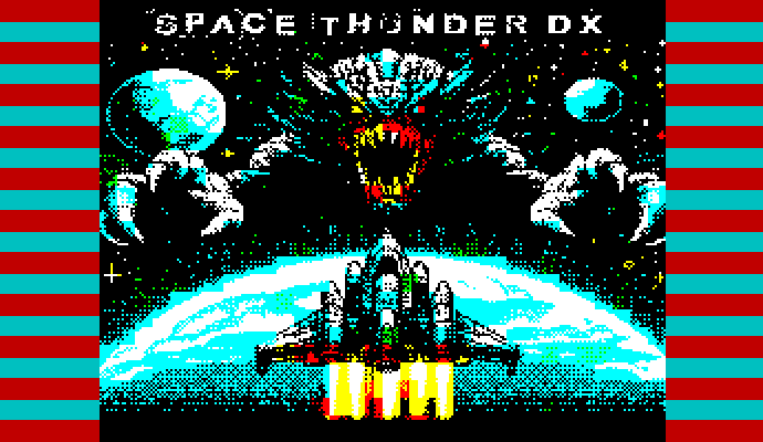 Коллеги с сайта Planeta Sinclair навели нас на космическую стрелялку Space Thunder DX — улучшенную версию почти одноимённой игры (только без DX), вышедшей три года назад.