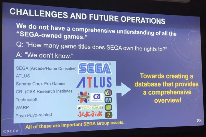 За свою богатую историю Sega успела поглотить немало других компаний — Atlus, Technosoft, а теперь она планирует навести порядок в своём хозяйстве, создав масштабную базу данных всех своих игровых активов.