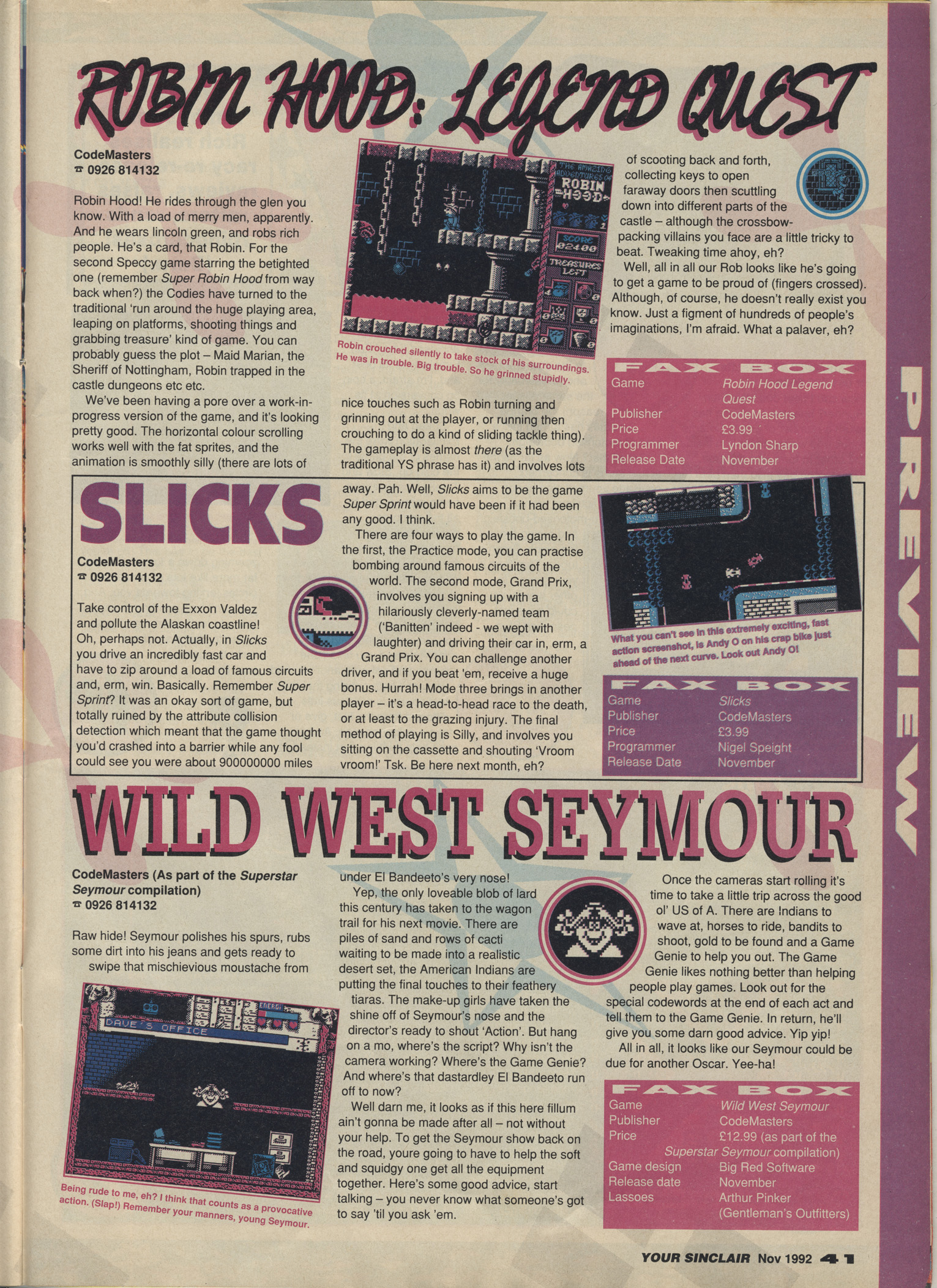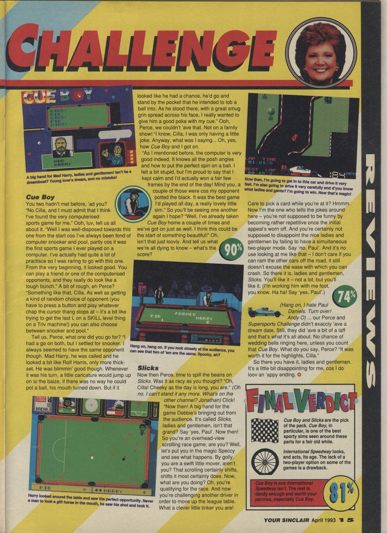 Позже Your Sinclair опубликовал обзор сборника Supersports Challenge, куда должна была войти и Slicks. Журналисты даже поставили игре оценку — 74% (неплохо, хоть и без восторгов). Предполагалось, что Codemasters выпустит её именно в составе этого сборника, однако его и след простыл. Никто не видел его вживую, так что существовал ли он вообще — загадка.