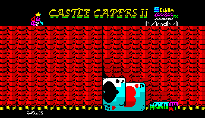 Уровней-экранов в Castle Capers 2 ровно 10, а в конце предстоит сражение с боссом — так, по крайней мере, пишут на сайте Planeta Sinclair, который и навёл нас на эту аркаду. Игра не самая простая, особенно на поздних уровнях, но и не какая-то чудовищно сложная: Габриэль традиционно не жестит. Кстати, автор игровой музыки — наш соотечественник Сергей Косов.
