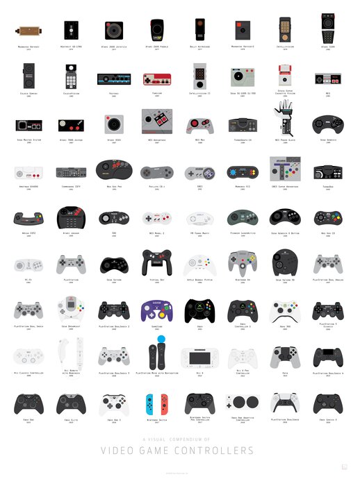 Мы нашли на сайте Pop Chart Lab замечательную картинку с изображением 72 контроллеров от разных контроллеров. Изучайте те, которых у вас не было, и пишите в комментариях, какими пользовались сами.