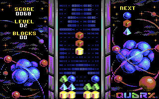 Игра называется Quarx и является клоном аркадной головоломки Xixit, которая изначально выходила на PC. Строго говоря, сама Xixit — чистейший клон Columns. Здесь в колодец тоже падают вертикальные фигурки из трёх цветных блоков: их нужно расставлять так, чтобы образовывались горизонтальные, вертикальные и диагональные линии из блоков одного цвета. Порядок цветных блоков в падающей фигурке можно менять, а ещё — перемещать их влево-вправо и ускорять падение.