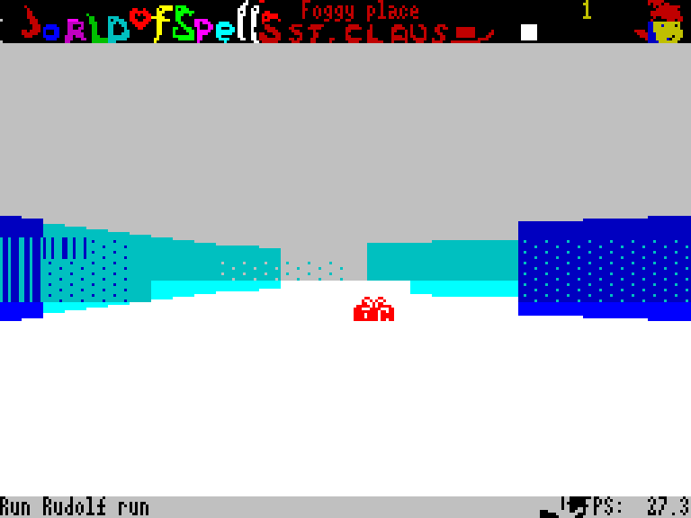 Ну, как гонку — скорее, быстрое путешествия по лабиринтам в поисках подарков для Санта Клауса. Управление при этом такое же, как и раньше — WSAD для поворотов и движения вперёд/назад, а также Q и E для стрейфа. Частота кадров тоже на уровне — в районе 25-30.