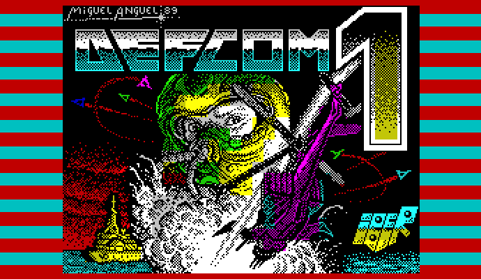 Defcom 1 от Iber Software — один из самых дурных скролл-шутеров на ZX Spectrum. Скроллинг дёрганый, спрайты перемещаются ещё более «рвано», а обсчёт столкновений такой жуткий, что иногда вообще не понятно, из-за чего потерял жизнь.