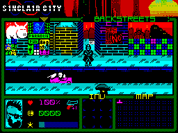 По городу снуют электроциклы C5, люди пользуются электронными часами Black Watch и, разумеется, компьютерами ZX Spectrum. Ваша задача — исследовать окрестности, общаться с разными персонажами, отстреливаться от врагов и упорно идти к своей цели. Ещё почему-то постоянно идут кислотные дожди — видимо, для пущей киберпанковской атмосферы.