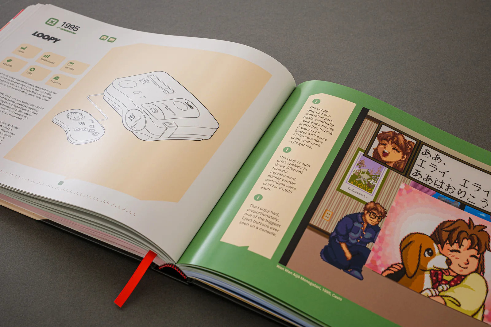 Естественно, в книгу попали все главные игровые приставки: NES, SNES, Mega Drive, PlayStation, Switch, Xbox. Но парни из Bitmap Books пошли дальше и добавили экзотику вроде Zeebo, Loopy и Gizmondo — консоли, о существовании которых многие даже не подозревают. Каждая система снабжена подробной исторической справкой, подборкой самых важных игр и оригинальными иллюстрациями от Адама Руфино.