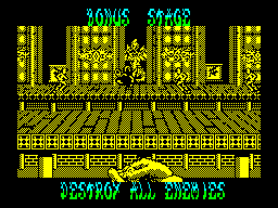Экшен Shinobi был перенесён на ZX Spectrum в целом сносно. Да, плавность скроллинга оставляет желать лучшего, спрайты разработчики тоже могли конвертнуть с аркадного автомата поточнее, а плохая видимость вражеских пуль и прочих летящих предметов просто-напросто мешает.