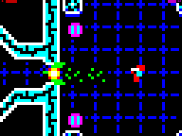 Выглядит она очень непривычно, потому что оперирует квадратиками размером 4×4 пикселя. А за счёт мультиколора в одном знакоместе могут находиться квадраты четырёх разных цветов, а не двух. Из-за этого графика в Alien Breed крупновата, зато цветаста — а это уже половина дела. Главное — что узнаются привычные по оригиналу объекты, хотя не всегда с первого раза. Но понять, где враг, а где что-то полезное, вы точно сможете.