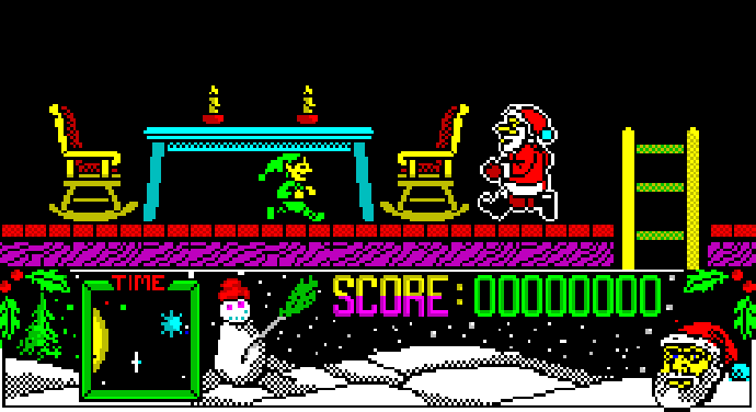 Что ж, теперь таких игр стало две, пусть даже второй выбор немного странный: The Official Father Christmas Game — неплохая аркада, но звёзд с неба не хватает. Впрочем, раскраска удалась на славу — игра сразу преобразилась и выглядит так, как будто пришла с другой, куда более графически совершенной платформы. Скачать её можно с нашего сайта, а вот небольшая «гифка», говорящая сама за себя: