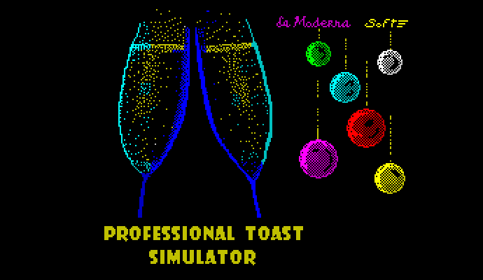 Парад рождественских игр для ZX Spectrum продолжается — ещё одну выпустил пользователь форума World of Spectrum с ником J.B. Называется она Professional Toast Simulator, и в ней нужно взаимодействовать с разными персонажами, которые пытаются всучить вам какой-нибудь предмет или выпить.