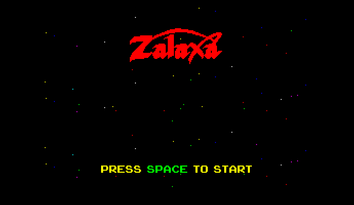Делает он это в своём блоге на примере разработки стрелялки Zalaxa — очевидного клона Galaga с активным использованием мультиколора (это когда два цвета можно использовать не в знакоместе 8×8, а в блоке 8×1). Свежие билды Робин выкладывает на форуме Spectrum Computing; самый последний проходит под номером 19, в нём уже можно управлять космическим кораблём и делать вид, что стреляешь (на самом деле по нажатию кнопки «M» просто увеличивается счёт).