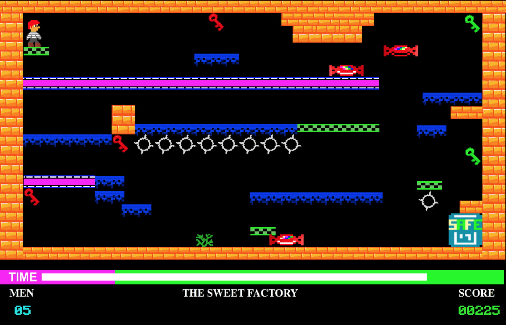По геймплею это чистейшей воды Manic Miner — тоже нужно ходить по отдельным экранам, собирать предметы (в данном случае — ключи), уворачиваясь от врагов, а потом срочно бежать к выходу. Сходство настолько велико, что при определённой фантазии игру можно назвать чем-то вроде вольного порта Manic Miner с ZX Spectrum на другие платформы.