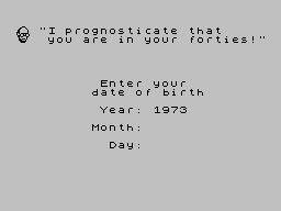 На экране постоянно появляются потрясающие пророчества типа «Предсказываю, что вы сейчас нажмёте какую-нибудь клавишу», «Предсказываю, что ваша любимая игра... На какую букву она начинается? «A», «B», «C» или «D»? Ну, раз «A», то это точно Atic Atac» — и так далее. Делать толком ничего не нужно — достаточно иногда жать любую кнопку и изредка делать какой-то простенький выбор.